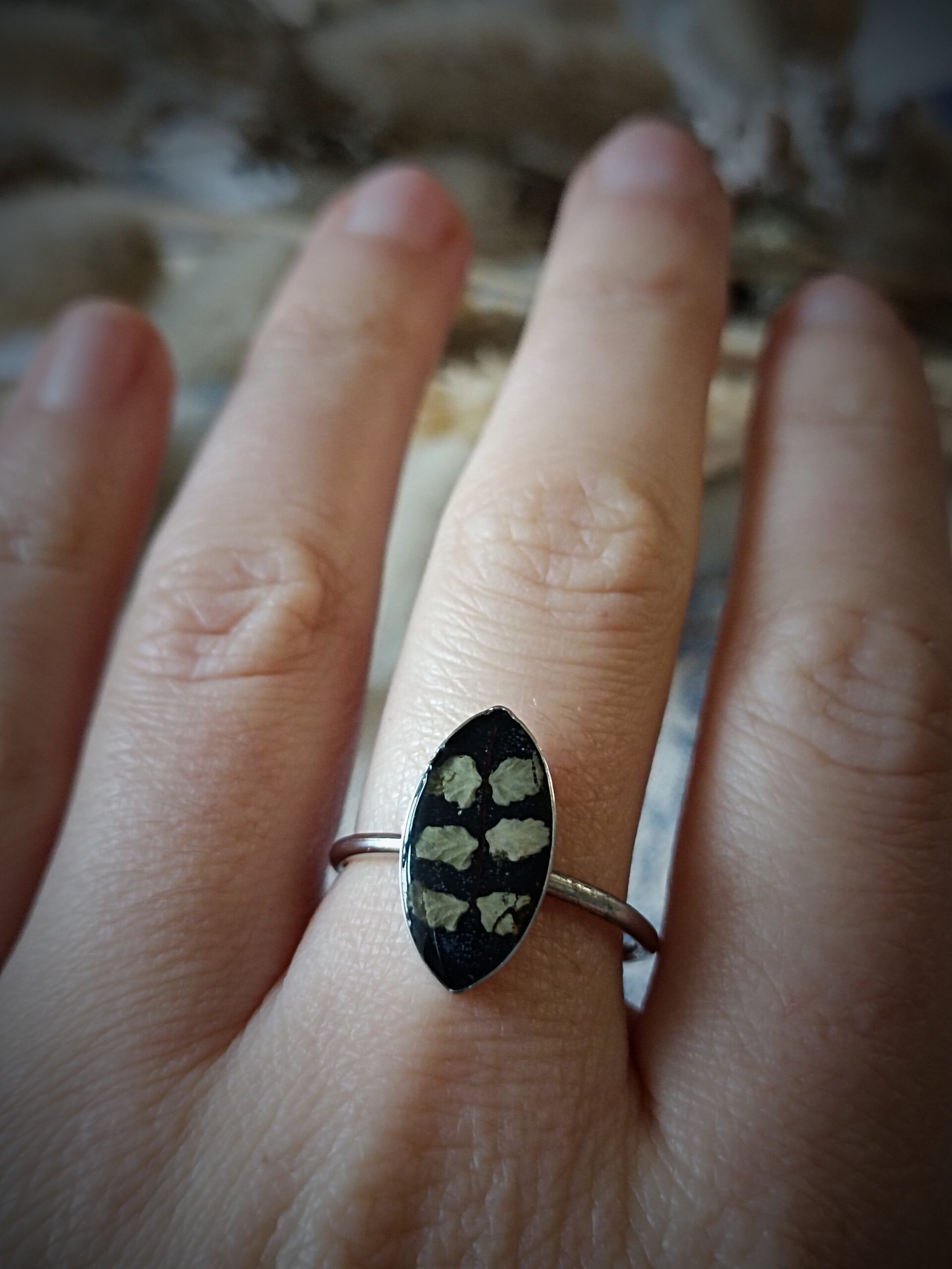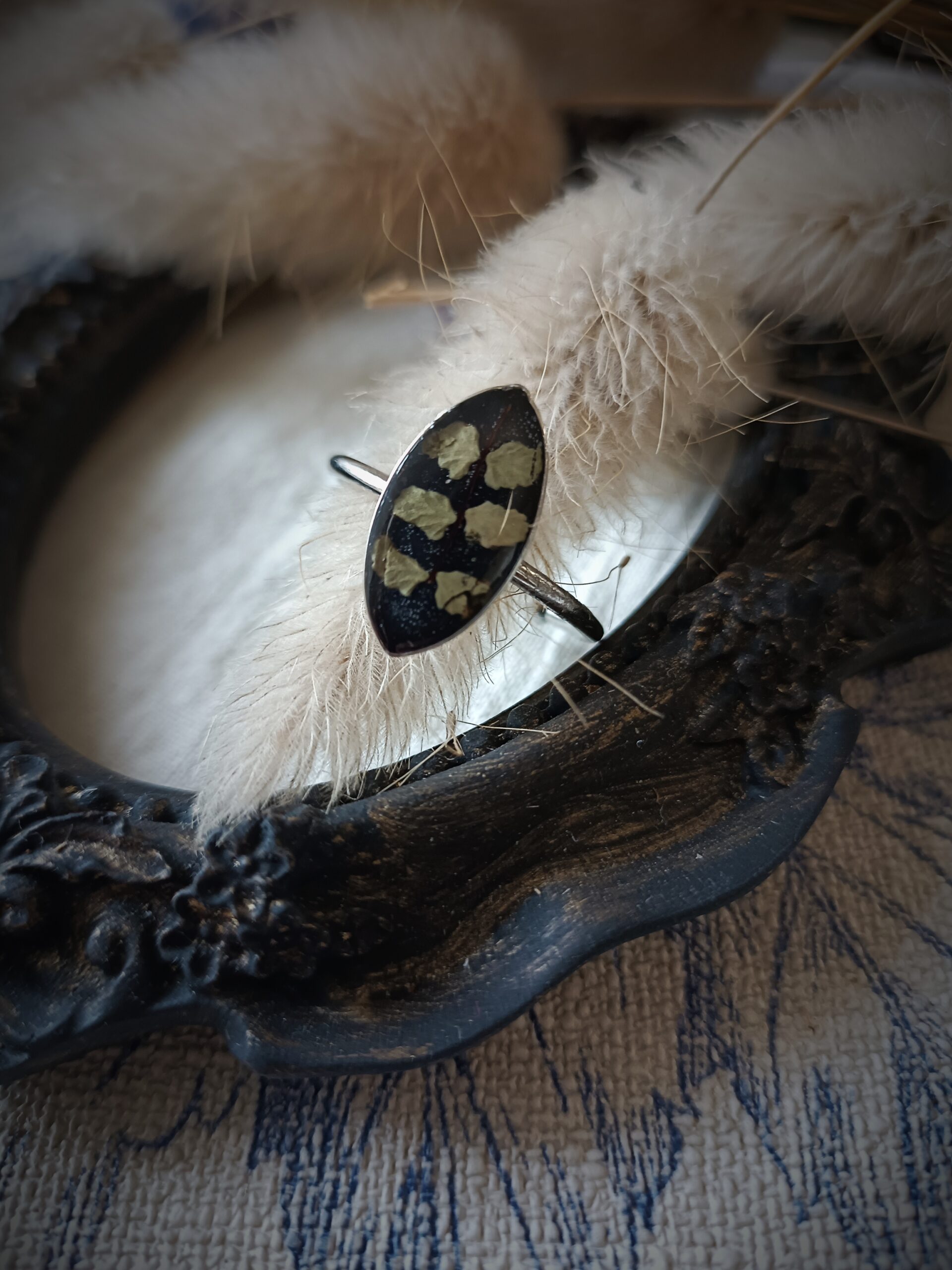 Feuille cueillie en Lozère. Le Capillaire des Murailles a été déposé sous presse plusieurs semaines. De la résine est coulée sur la feuille pour la protéger.